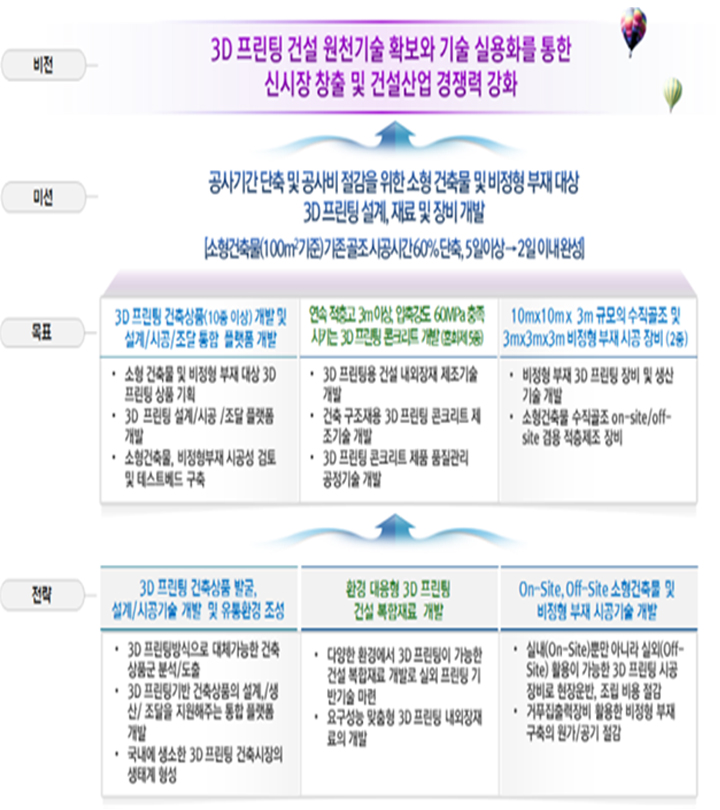 | 소형 건축물 및 비정형 부재 대상 3D 프린팅 설계, 재료 및 장비 개발 | |